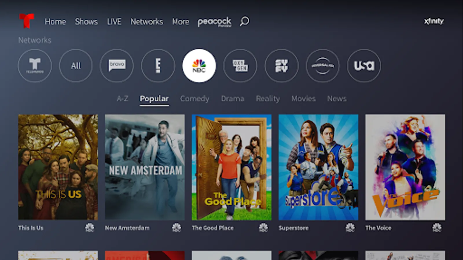 • Access to on demand content from across the NBCUniversal family of networks (including NBC, E!, USA, SYFY, Oxygen, MSNBC, CNBC, Universal Kids, Universo, and Telemundo).