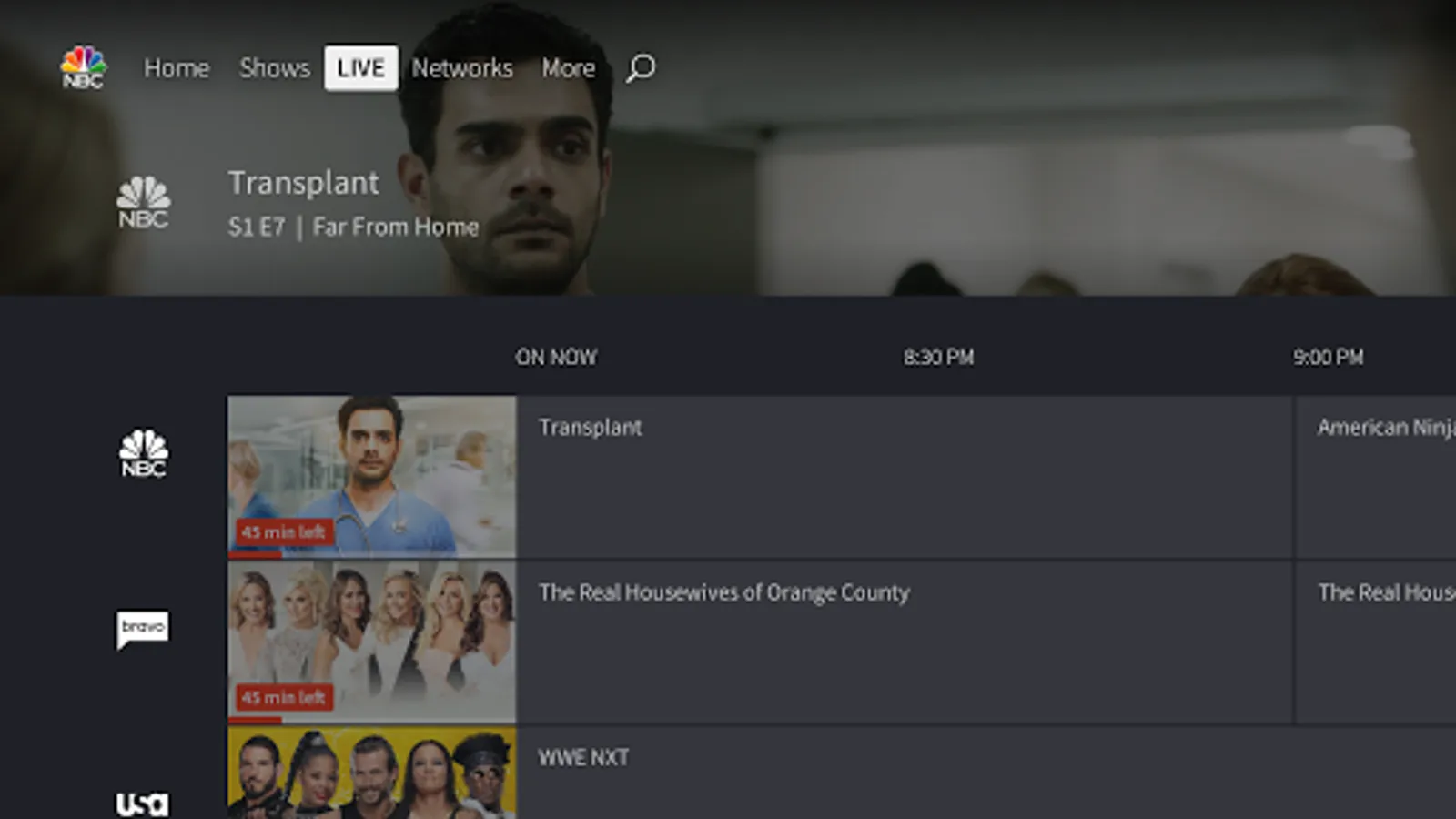 • Stream can't-miss episodes and events from Bravo, E!, Oxygen, SYFY, USA and more.