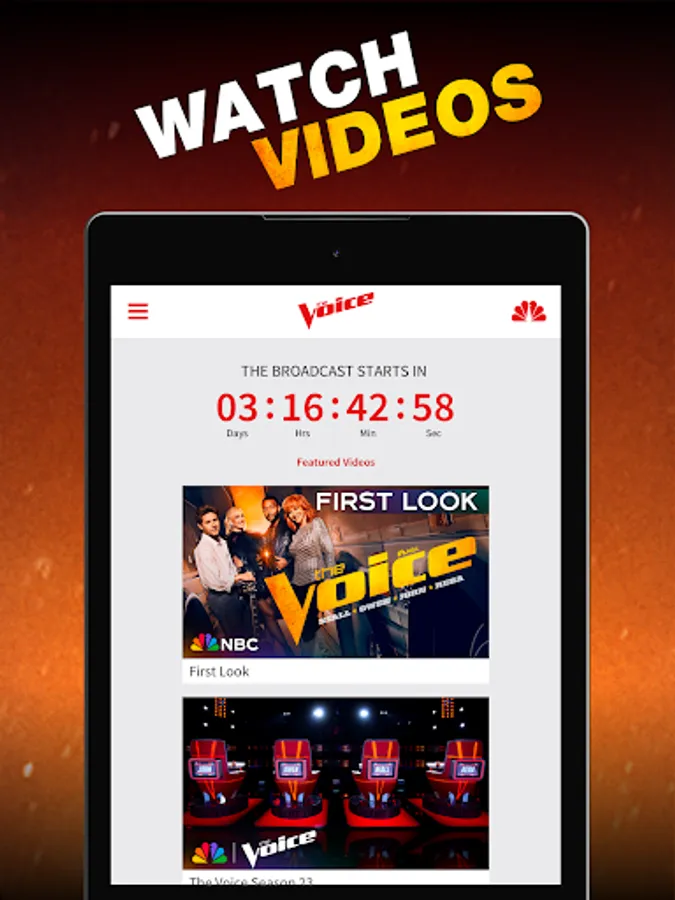 Watch the auditions and performances live along with superstar coaches Niall Horan, John Legend, Reba McEntire and Gwen Stefani and their mentors as they search for America's best new talent. Vote for your favorite artists directly within the app and watch clips of your favorite performances.