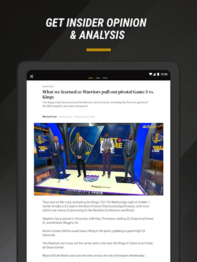 - Access to Warriors, 49ers, Giants, Kings, Athletics, and Sharks highlights, Insider analysis, top headlines, and exclusive offers