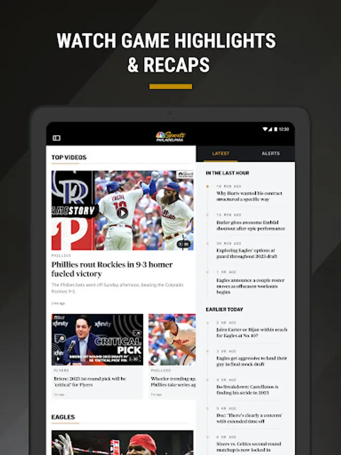 The NBC Sports Philadelphia app is your ultimate teammate! It’s home to your local team news, game recaps and highlights for Philadelphia Eagles, Philadelphia Sixers, Philadelphia Phillies and Philadelphia Flyers.