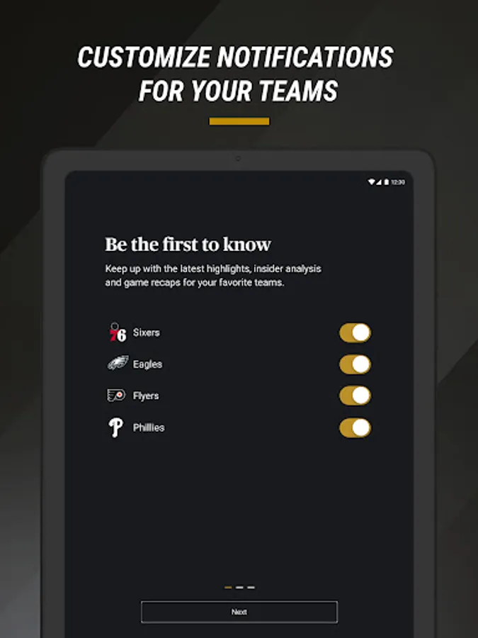 Customized push notifications for sports alerts about the Eagles, Phillies, Sixers and Flyers