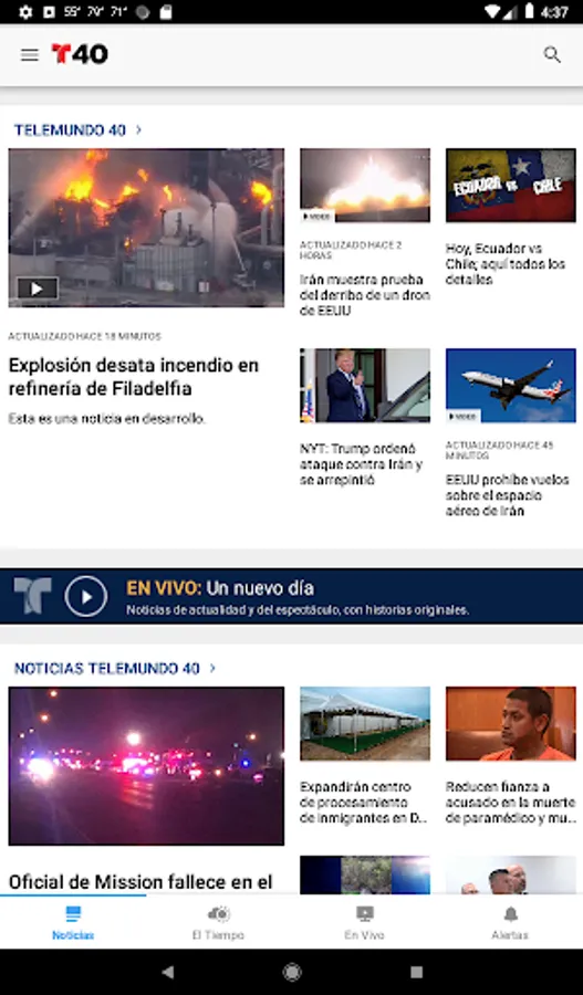 La rediseñada app de noticias y del tiempo de Telemundo 40 te conecta con los mejores contenidos locales, los pronósticos del tiempo más exactos, noticias de último momento, TV en vivo, y periodismo investigativo.
