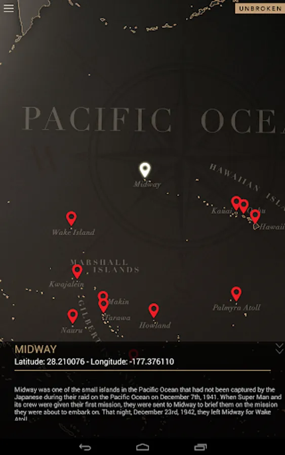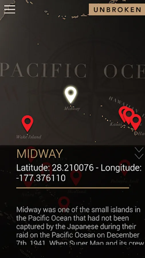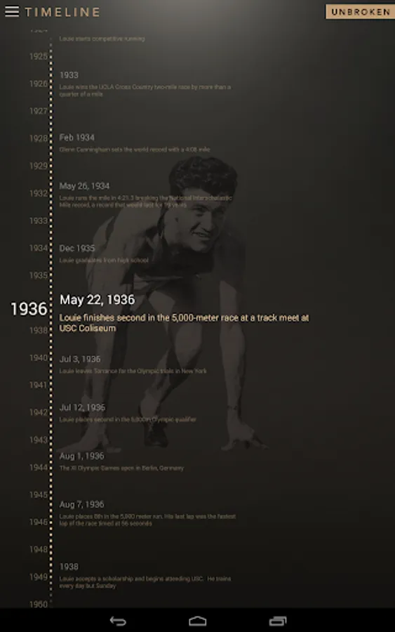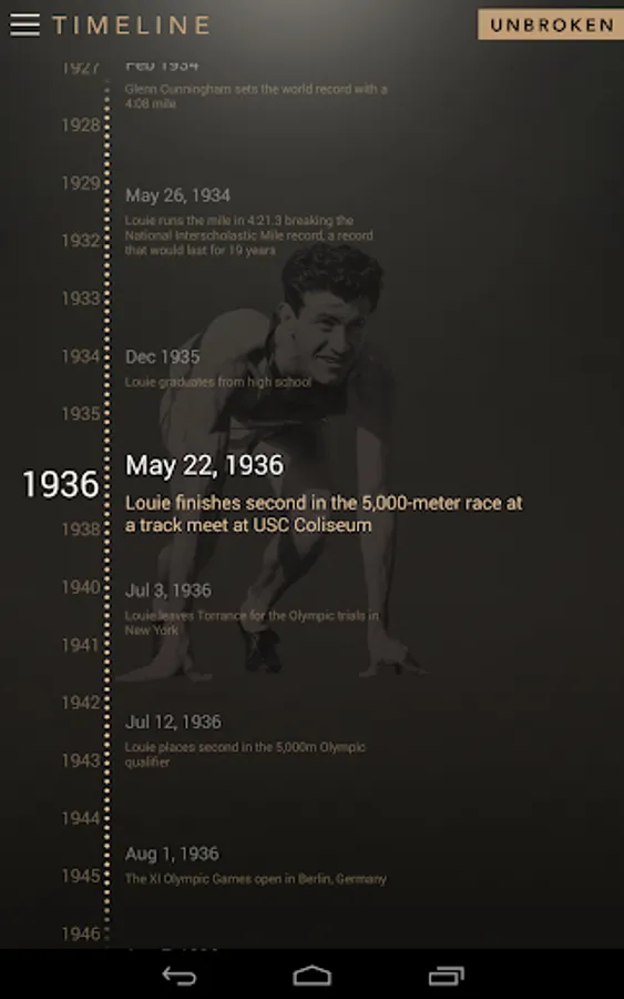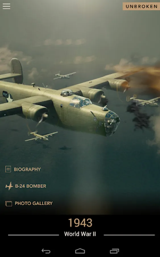 The Unbroken movie companion App is an interactive journey through the life and experiences of American Hero, Louie Zamperini.