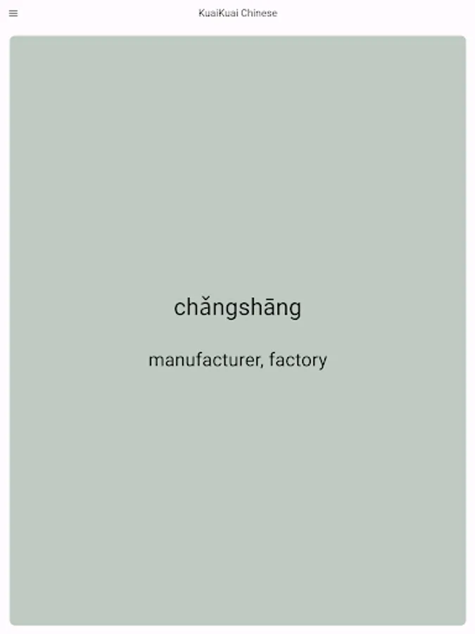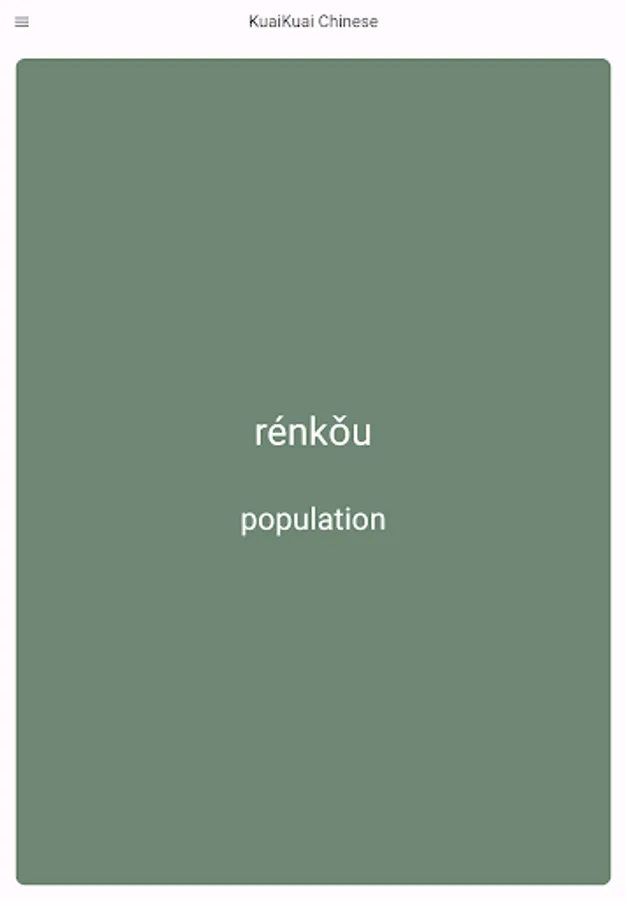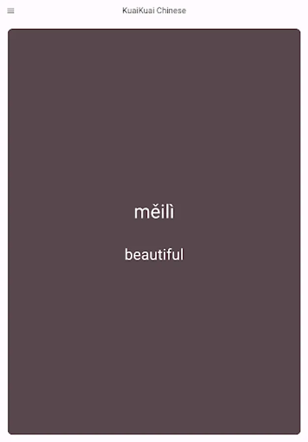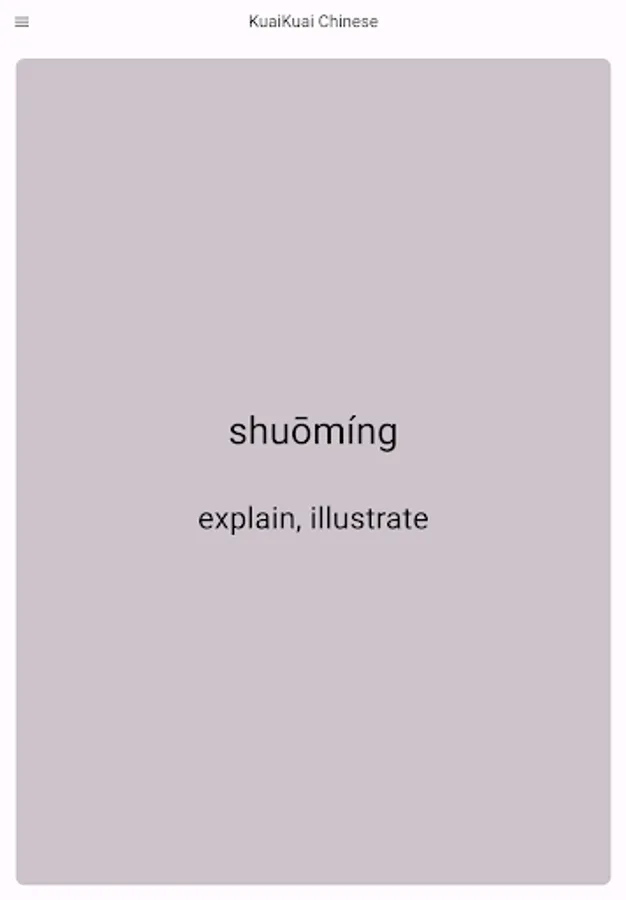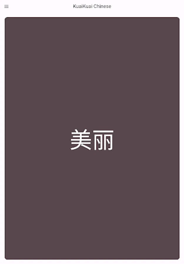 🟥 KuaiKuai flash cards have the Chinese word on the front and the pronunciation and meaning on the back. Swipe through to learn 1000+ essential and frequently used vocabulary words, all vetted and approved by native speakers!