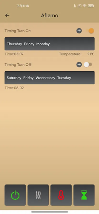 Aflamo is an intelligent electric fireplace control app. It is equipped with function controls of On/Off, Flame color, Flame brightness, Ember-bed color, Ember-bed Brightness, Heating, Timer, Temperature, Flame Speed and so on.