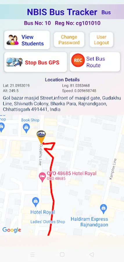 Neeraj Bajpayee International Rajnandgaon School Bus Tracker i.e. NBIS Bus Tracker allows parents to track their child with the help of Global Positioning System installed in school bus conductor mobile phone.