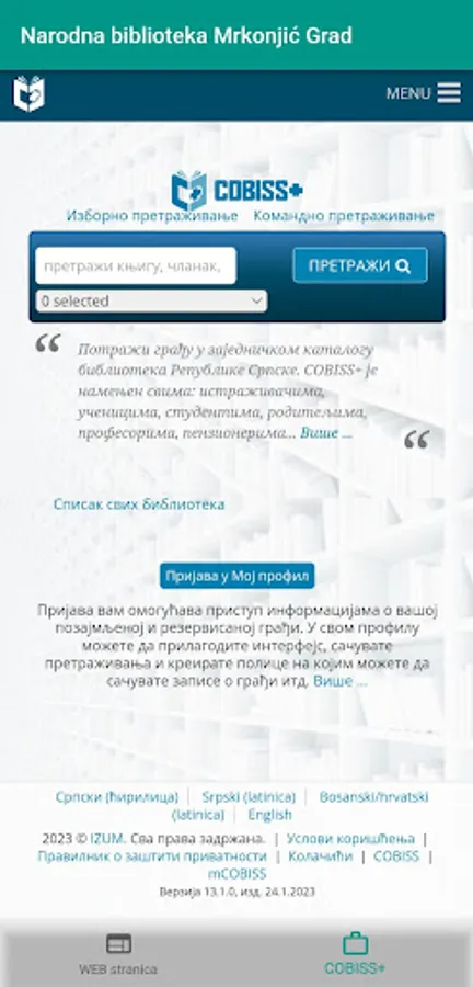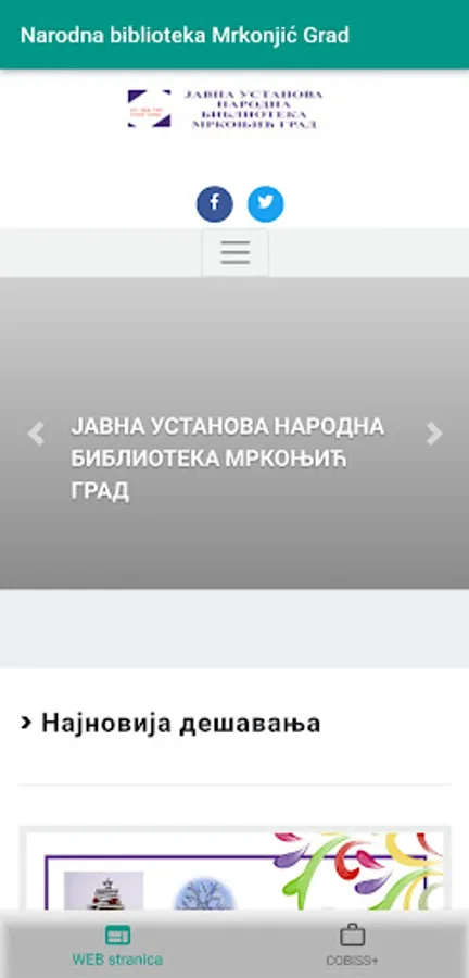Web page and COBISS+ of "Narodna biblioteka MG" at one place