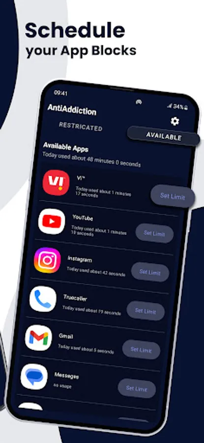 Anti Addiction can be used for yourself to limit phone usage or either you can use it as a parental control to limit screen time on your kids’ phones and help them limit phone usage, stay focused on studies, and get rid of phone addiction. Some of the main features of this screen time control app are given below;