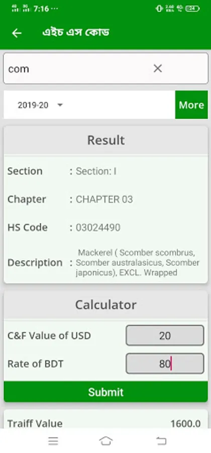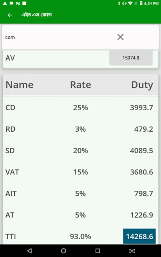 Customs VAT & TAX মোবাইল এ্যাপসটিতে সকল H. S. Code এর বিস্তারিত বর্ণনাসহ রয়েছে অসাধারণ কাস্টমস্ ক্যালকুলেটর। এ্যাপসটিতে HS Code অনুযায়ী বছর ভিত্তিক CD, RD, SD, AIT, ATV, AT এবং TTI রেট রয়েছে। এ্যাপসটির ট্যারিফ বর্ণনা এবং রেটসমূহ Customs Act, 1969 এর First Schedule, ট্যারিফ মূল্য এবং সর্বনিম্ন মূল্য সংশ্লিষ্ট এস.আর.ও থেকে নেওয়া হয়েছে।
