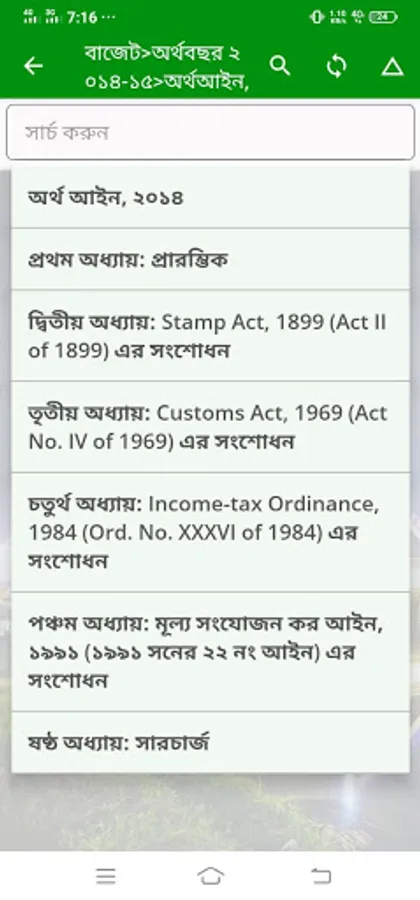 মোবাইল এ্যাপসটিতে আইন ও বিধিমালার বছর ভিত্তিক সংশোধন, সংযোজন ও প্রতিস্থাপনগুলো যুক্ত করা হচ্ছে এবং বছরভিত্তিক প্রজ্ঞাপন এস.আর.ও, আদেশ ও ব্যাখ্যাপত্র সংযোজন করা হয়েছে। এ্যাপসটিতে শক্তিশালী সার্চ অপশন রয়েছে, যেখানে কাঙ্খিত তথ্য বা শব্দ লিখলেই খুজে দিবে মূহুর্তের মধ্যে। অদূর ভবিষ্যতে এই মোবাইল এ্যাপসে বিগত যে কোন বছরের জারিকৃত গুরুত্বপূর্ণ তথ্য পাওয়া যাবে মর্মে আশা করা যায়।