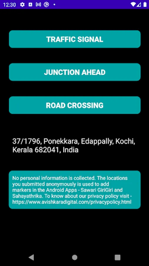 A utility app to add locations to the travel apps, Sahayathrika & Sawari GiriGiri developed and published by the same developer in Google playStore. The location types include traffic signals, traffic junctions, road crossing etc. in the roads of mainly Kerala, India. No personal data is collected and the locations you submitted will be added to the database anonymously and will be used in the above mentioned apps. Also, no credits or money will be given to the contributor. It is more of a public service - volantary support to the road travellers of Kerala, India by providing them such information like traffic signals, traffic junctions, road crossing etc , which may help them in their local Journey..
