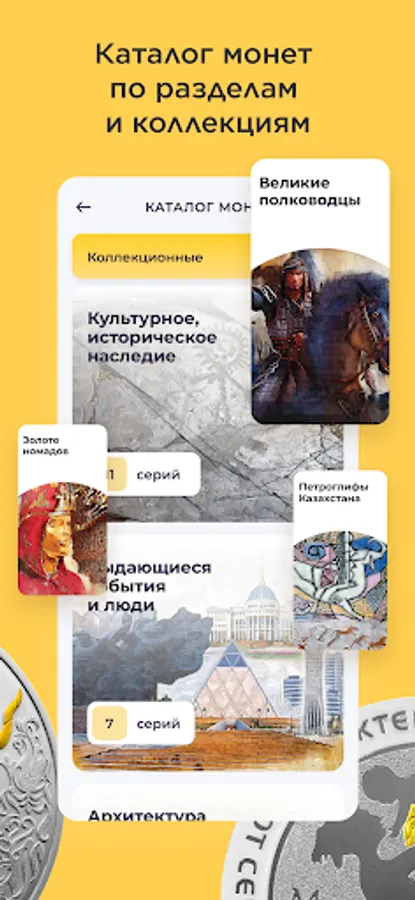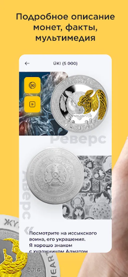 You will have access to a detailed description of the coins, photos, interesting facts, videos, 3D images, AR elements, etc.