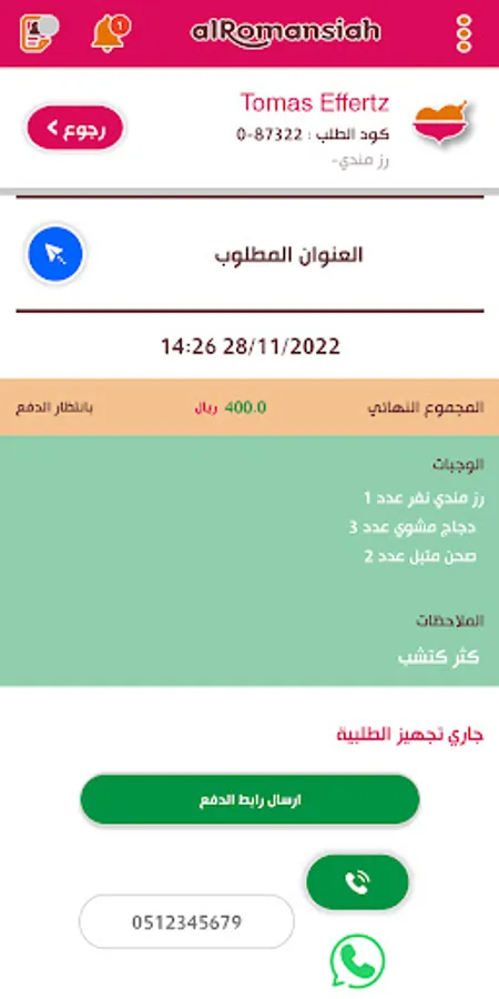 It also provides the driver with the ability to contact the customer and open the order site