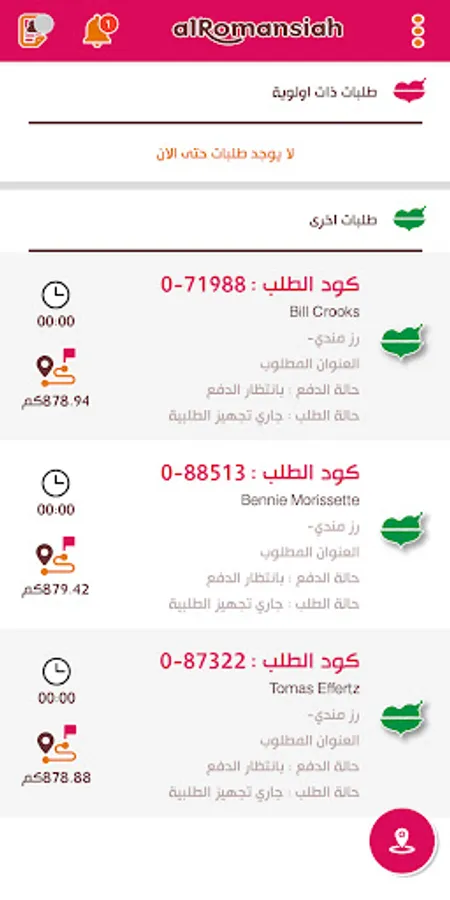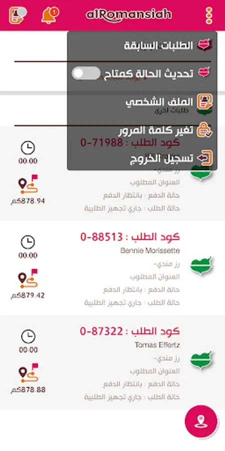 Through it, the driver can follow delivery requests on the map and change their status according to the status (under delivery, pending, delivered, canceled)