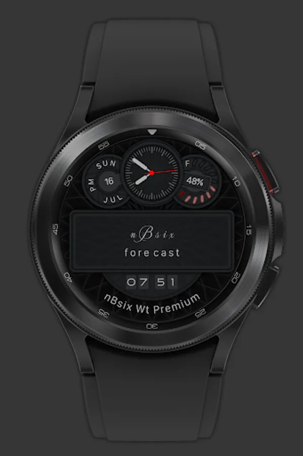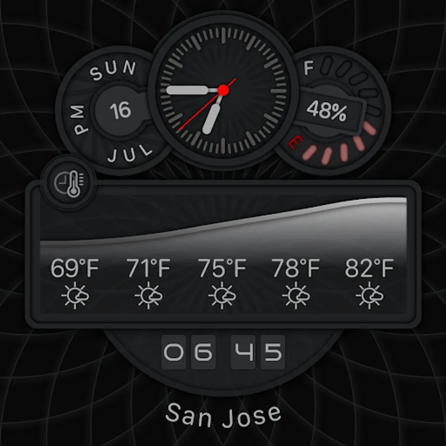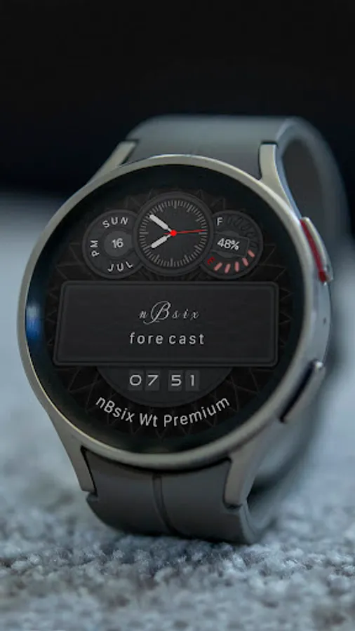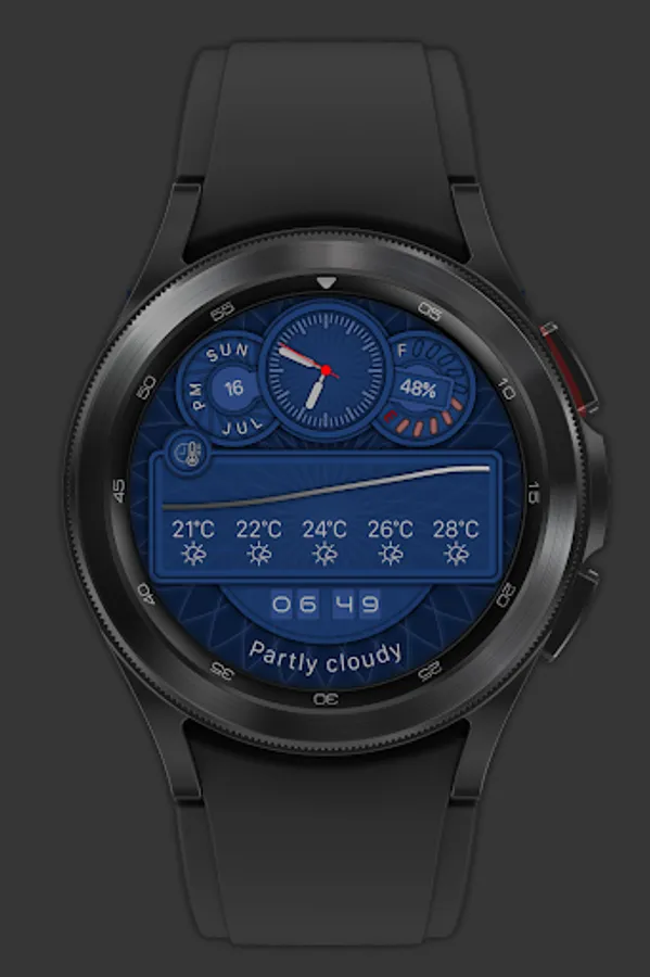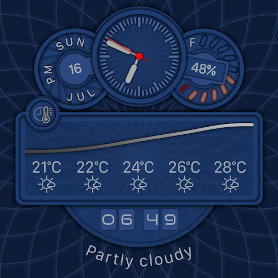 The premium weather watch face, displaying forecasts for the next 5 hours or 5 days, or showing whatever you input.