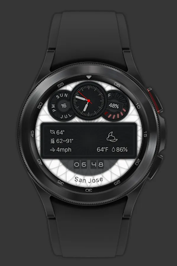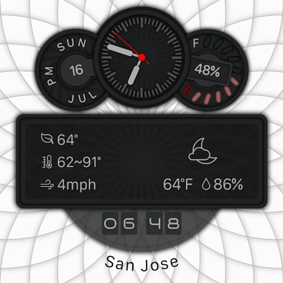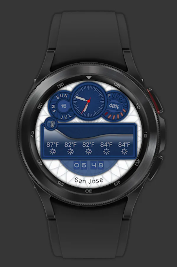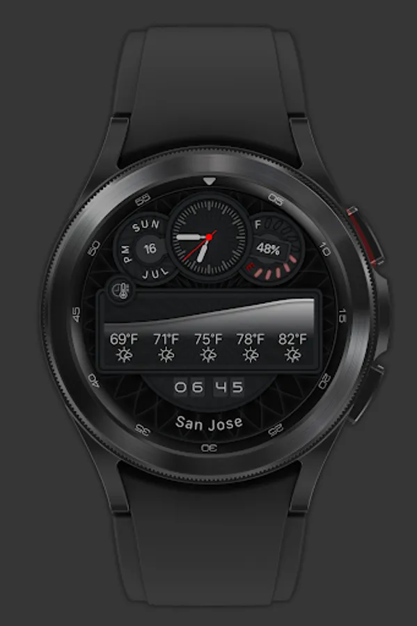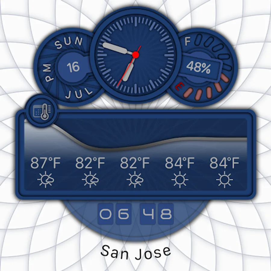 The premium weather watch face, displaying forecasts for the next 5 hours or 5 days, or showing whatever you input.