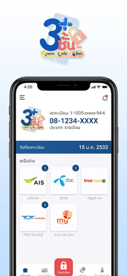 Office of the NBTC. Recognizes the importance of creating a tool that people can check with your mobile phone, and protect themselves from the use of mobile phones. Has made the application layer 3 "Make informed lock" can "check" that is registered to use the mobile phone as many call "informing" the unknown, and the number of missing "locked" to prevent others. bring your card to someone opening a new SIM. And can be "unlocked" from the application layer 3 with yourself.