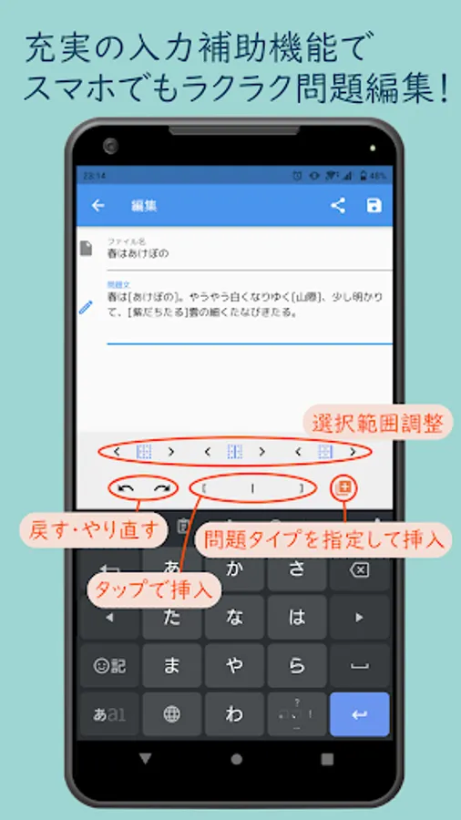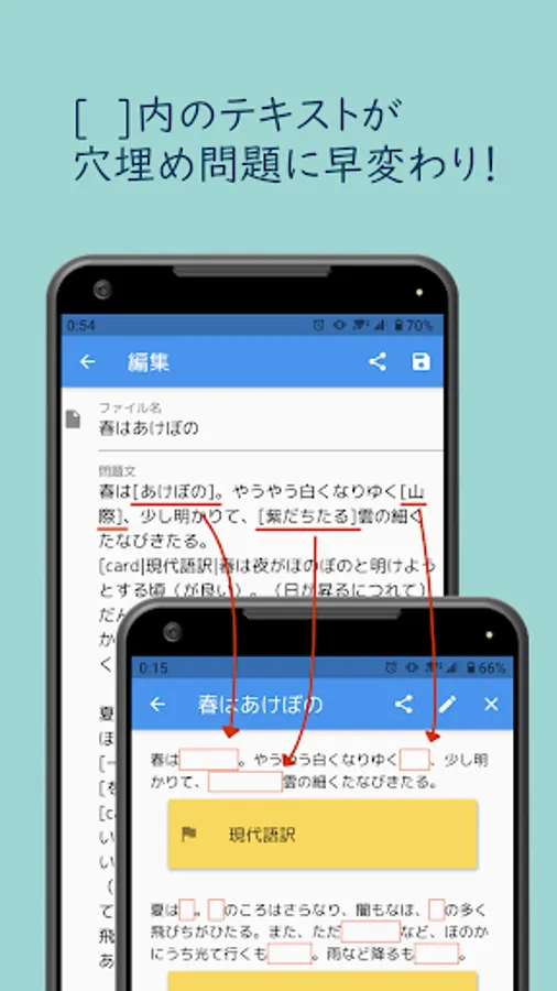 The area enclosed in [] is a fill-in-the-blank problem. Just copy and paste the text you want to make a problem and enclose the part you want to fill in with [], and it will turn into your own problem!