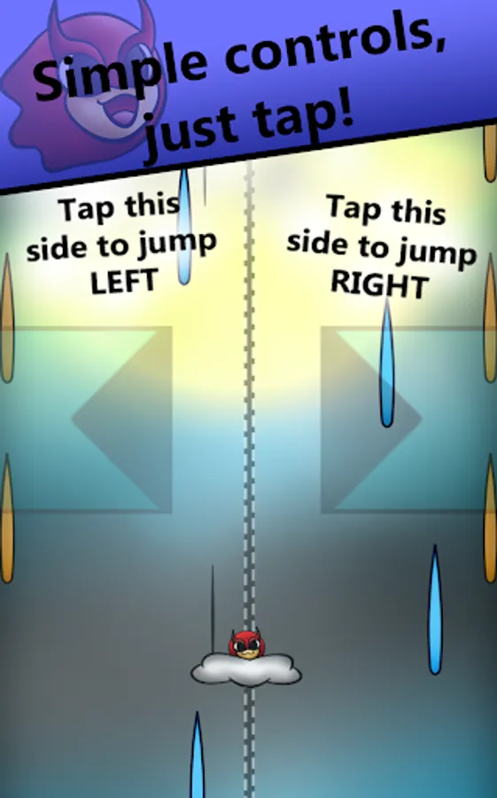 Ayalls goal is to stay in the air as long as possible and create as many ruby raindrops as possible. By simply tapping on the left or right side of the screen, Ayall will jump in that direction.