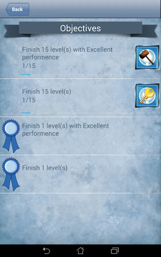There are 50 different levels in the game. As you finish a level succesfully, next level will automatically be unlocked. Another way of unlocking next level is to use a key. Another item which can be used in the game is Marble Smasher. It can be used to remove remaining marbles at the end of the game. As you complete the objectives, you will be rewarded with items.