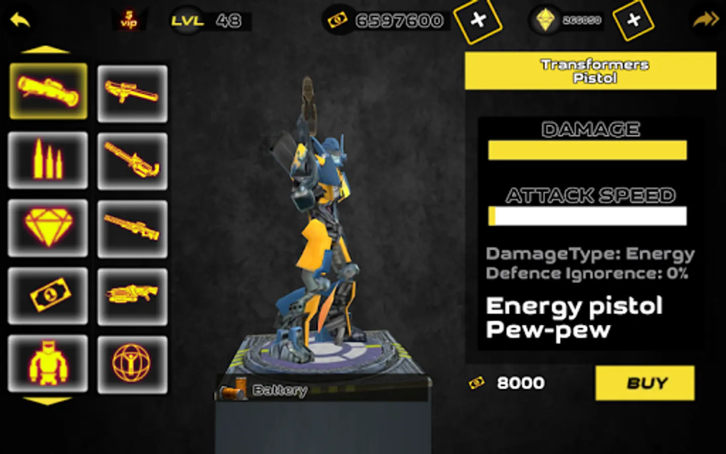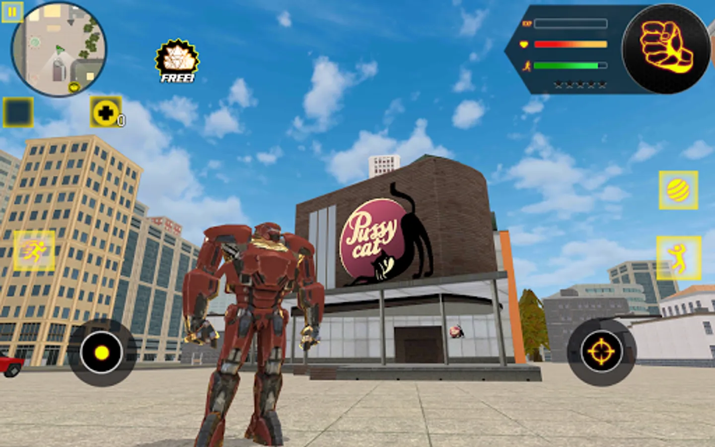• Open the store and change form of your iron hero: cars, flying transport and other mechanisms, big or small!