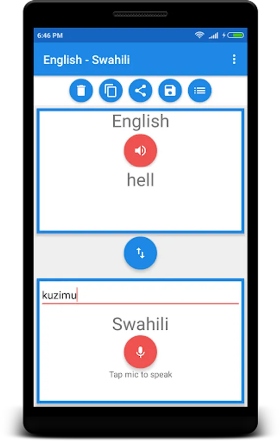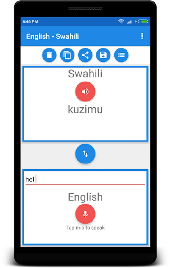 English - Swahili Live Translator is the best for learning English and Swahili . In that, you are able to translate words & even sentences, in just a split second.