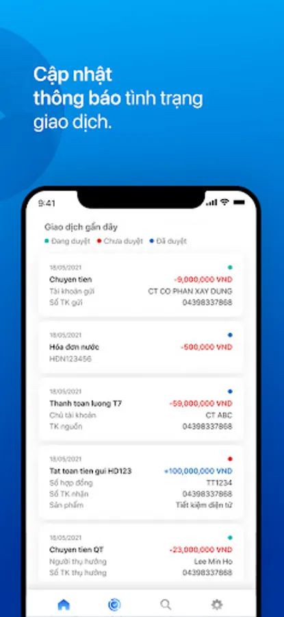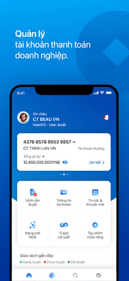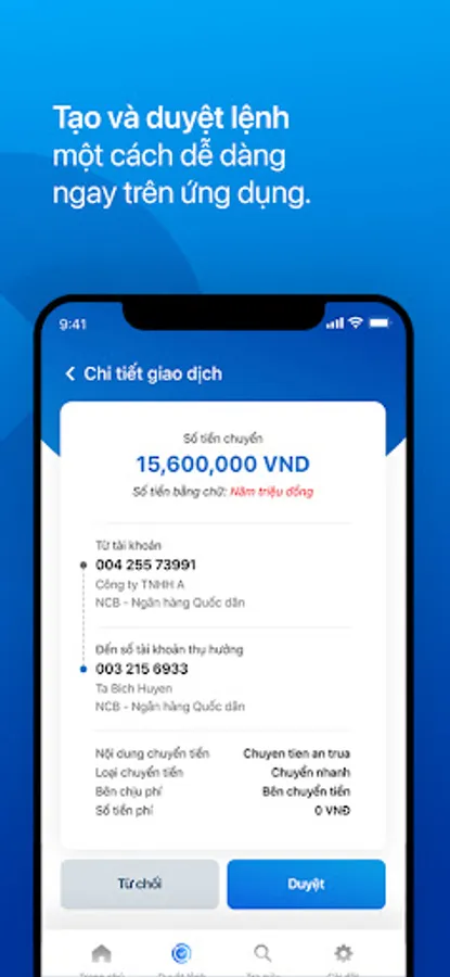 + Approve transactions: Domestic money transfer, Recurring money transfer, Term deposit, Bill payment, Bill payment registration, Tracing, Loan registration....
