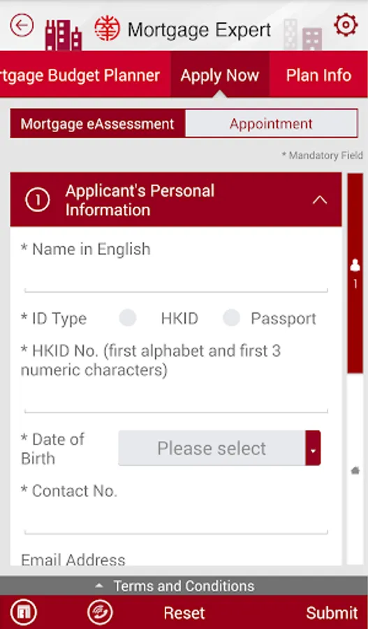 - Online appointment for mortgage application