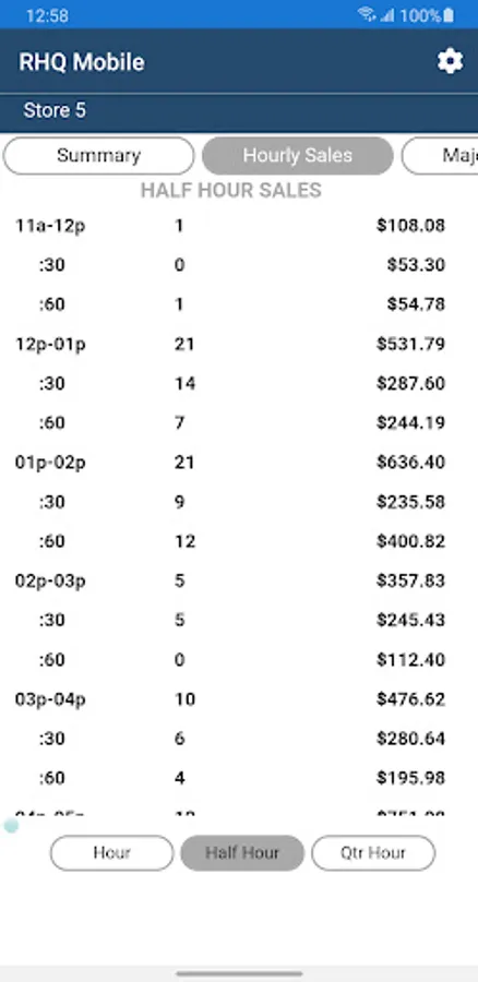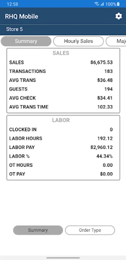 The RHQ Mobile app provides real-time POS sales and labor data from all stores within your company. With RHQ Mobile, you can easily view a single store or a summary of all store locations. The app features multiple summary and detail data views as well as multiple charts. These allow you to view valuable comparison data from the convenience of your mobile device.