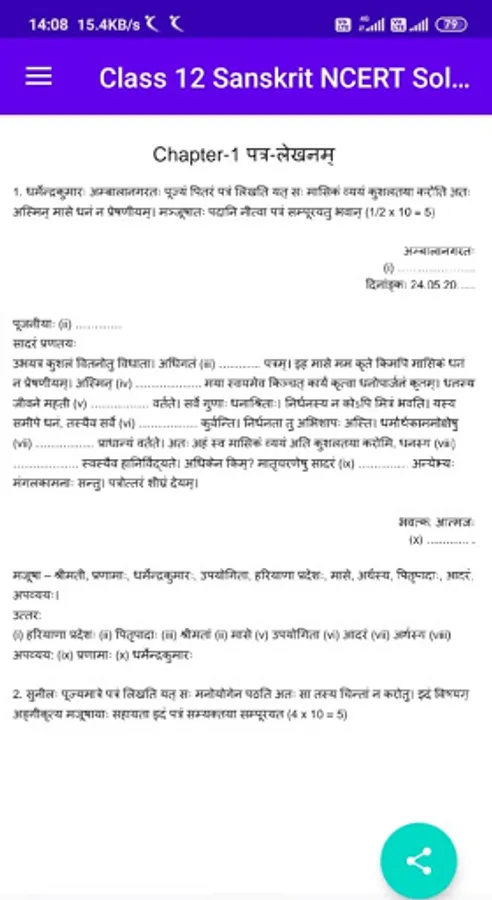 Chapter 1 पत्र-लेखनम् (अनौपचारिकं पत्रम्/प्रार्थनापत्रम्)