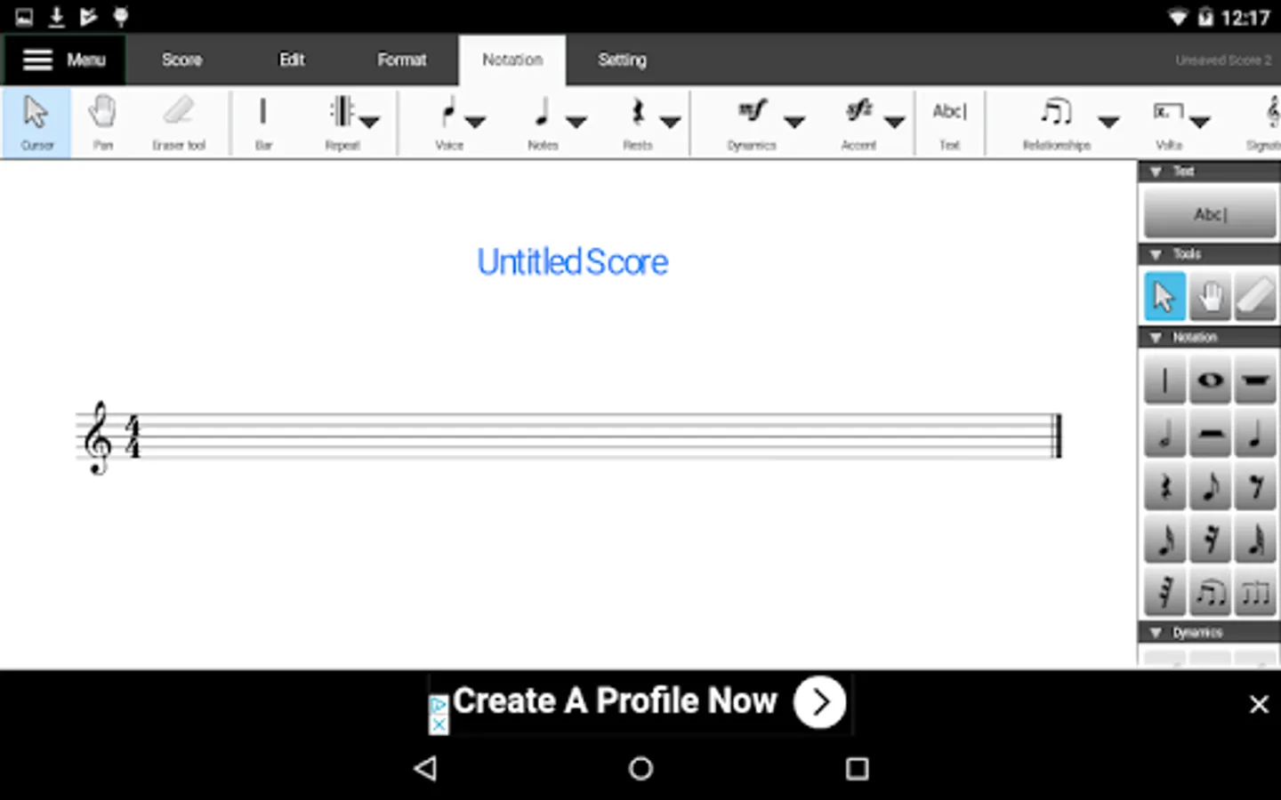 Crescendo Free Music Notation Editor is a simple and intuitive app for help with writing your musical compositions. This free music writing software allows you to create and save your own musical creations. Crescendo Free Music Creation software features a wide array of time and key signatures and notation symbols.