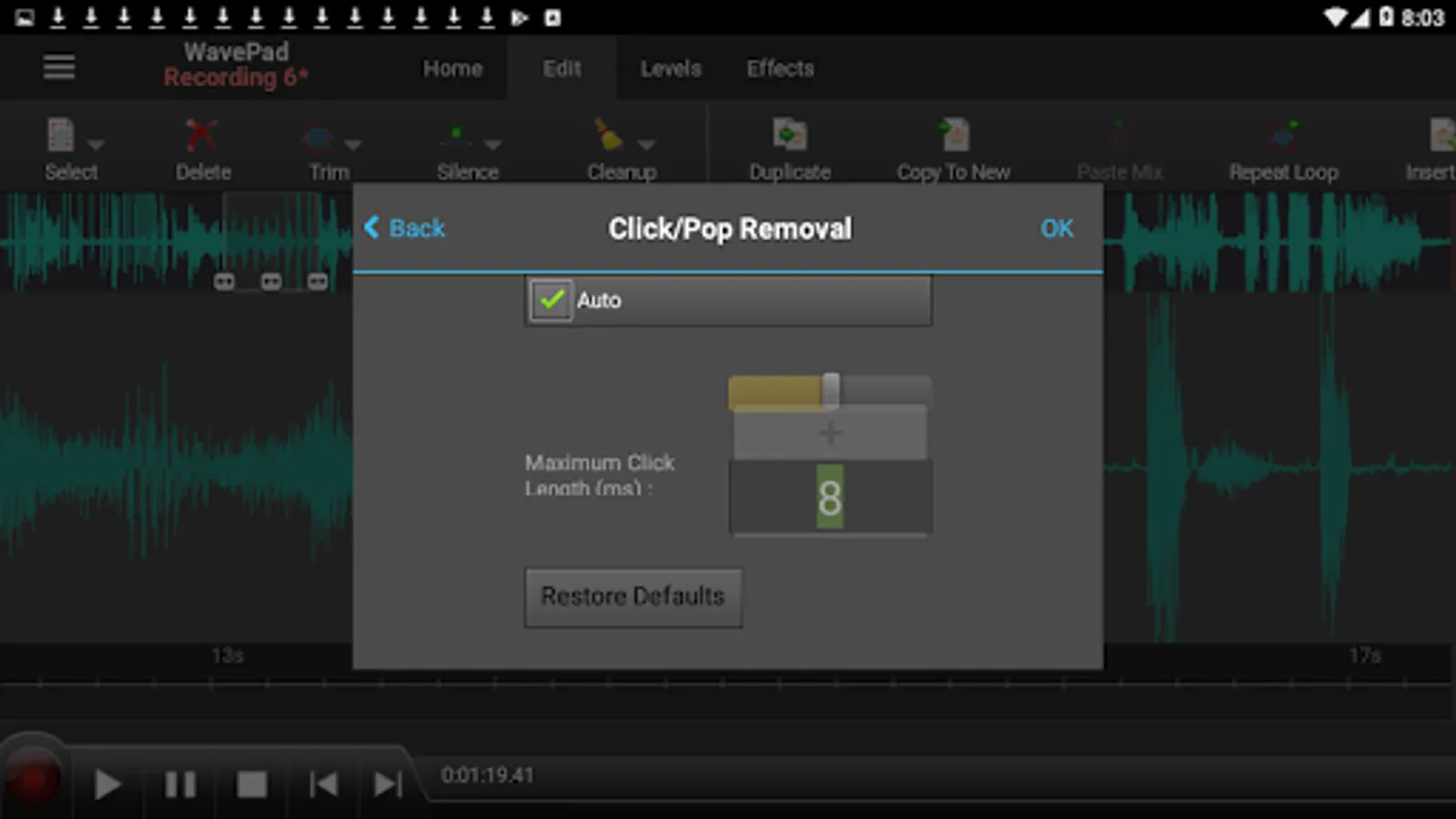 WavePad Master's Edition sound and audio editing application. Record, edit, and add effects, then send audio to yourself or others to share or continuing editing on another device. WavePad Master's Edition allows you to record voice or music, then edit the recording and add sound effects, clean up background noise and more to achieve high quality audio recordings.