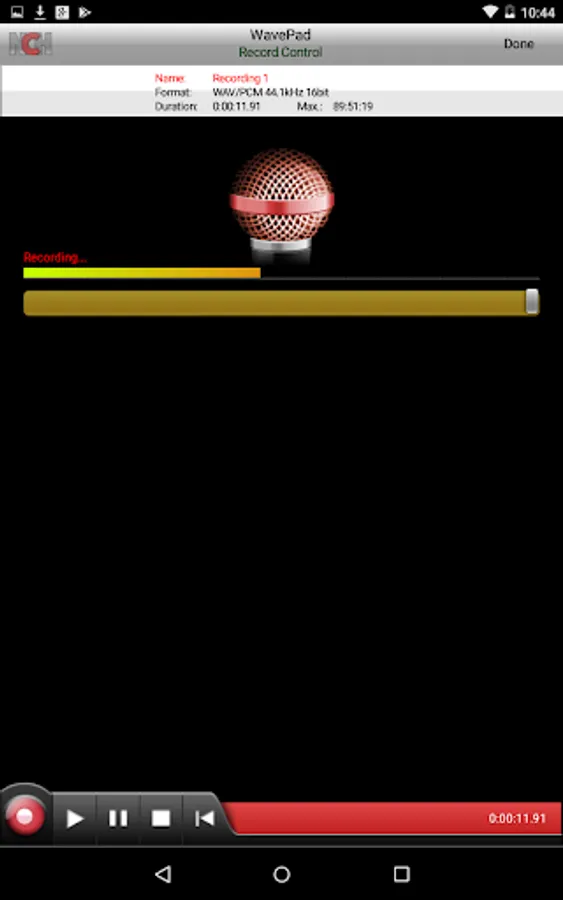 This free version is licensed for non-commercial use only. For commercial use, please install the version here: https://play.google.com/store/apps/details?id=com.nchsoftware.pocketwavepad