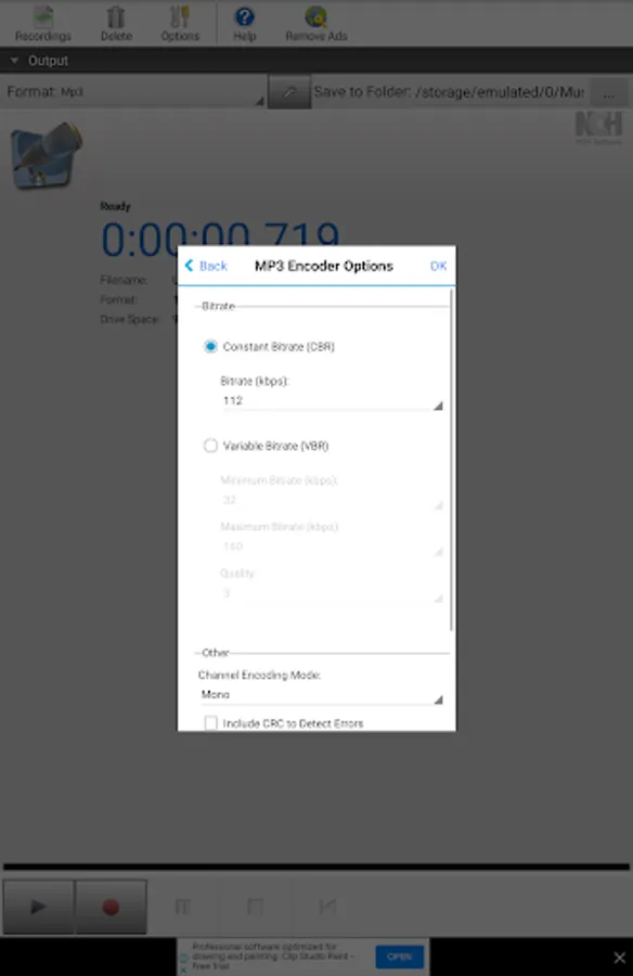 This free version is licensed for non-commercial use only. For commercial use, please install the version here: https://play.google.com/store/apps/details?id=com.nchsoftware.recordpad