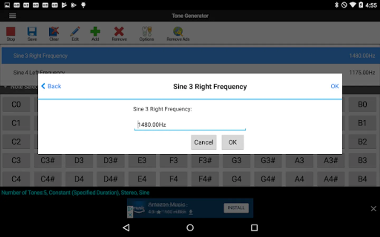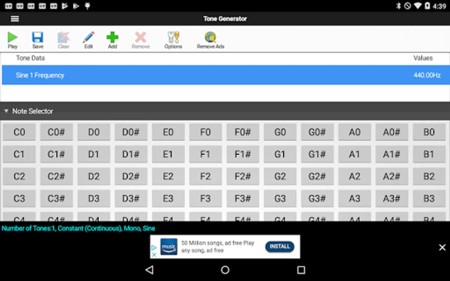 This free version is licensed for non-commercial use only. For commercial use, please install the version here: https://play.google.com/store/apps/details?id=com.nchsoftware.tonegen