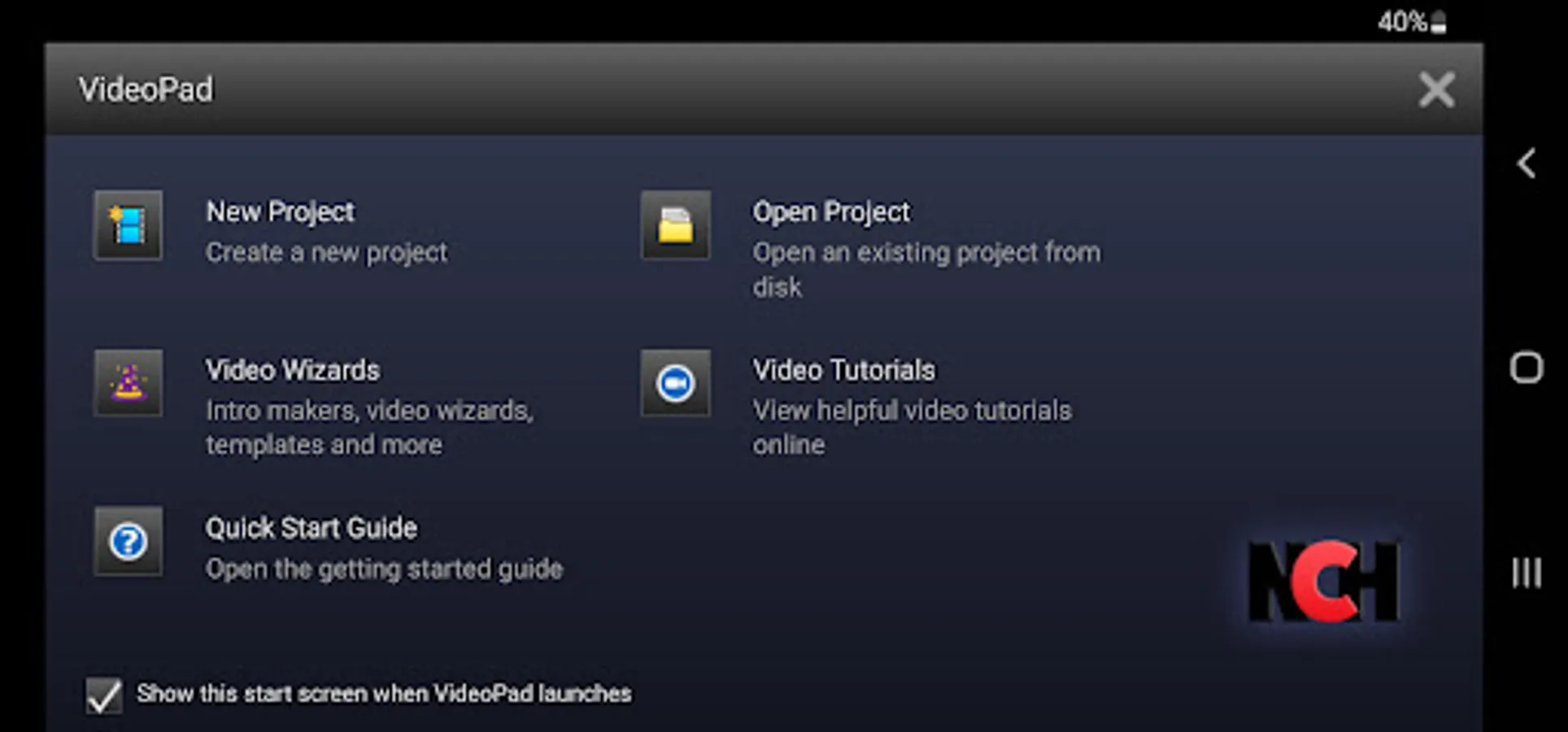 This free version is licensed for non-commercial use only. For commercial use, please install the version here: https://play.google.com/store/apps/details?id=com.nchsoftware.videopad