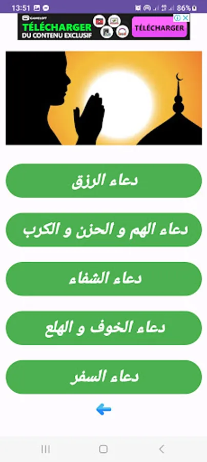 This is an application claire avec une grande collection of supplications auxquelles vous pouvez accéder facilement et à tout moment sans avoir besoin d'Internet et gratuitement.