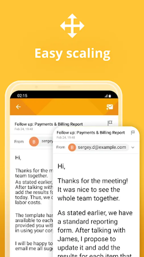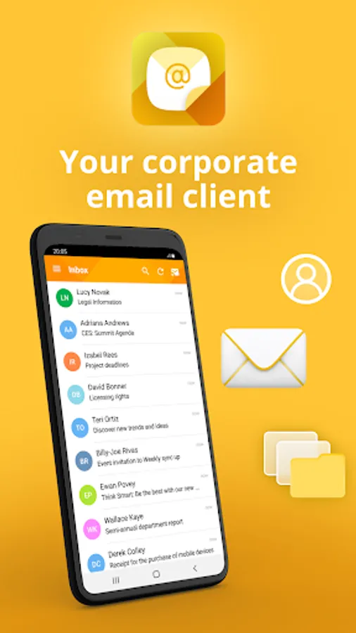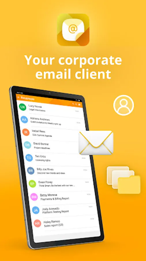 • All emails in a single app. Connect to your organization's corporate MyOffice Mail server and work with any number of accounts. In addition, you can also use other email systems that support the IMAP and SMTP protocols.