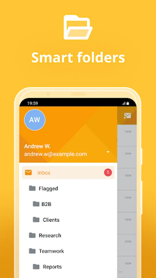 • View all incoming messages in a single feed. Use smart folders to simultaneously work with emails from all connected accounts.