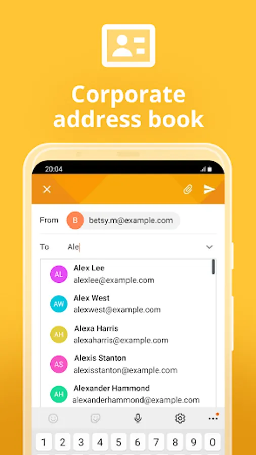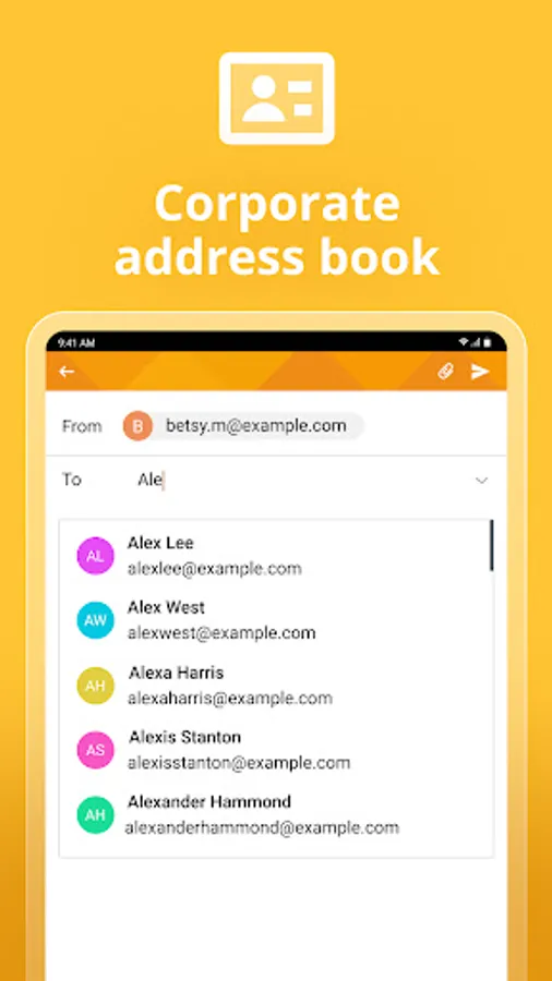 • Quickly find the right contacts in the corporate address book. Enter the first letters of the colleague's name or email address for quick address substitution.