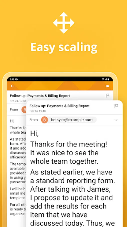 • View emails even with the smallest font. The contents of emails shall automatically fit into the screen area when you zoom in.