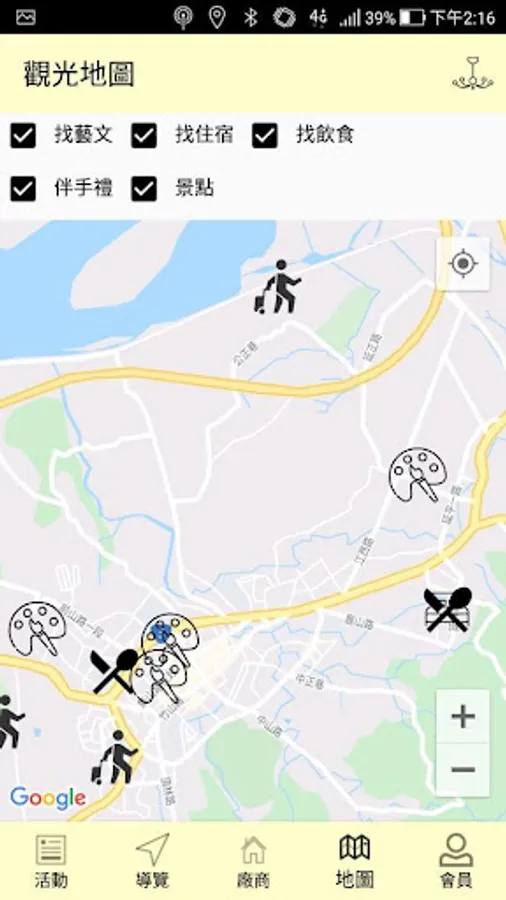 4. Map page: Users can see nearby attractions and manufacturers after opening the location.