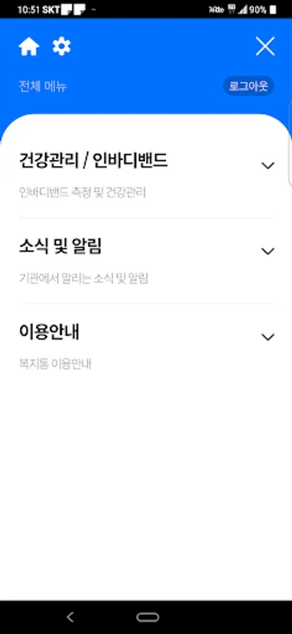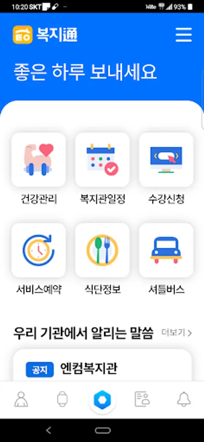 어르신들을 위한 맞춤형 서비스로, 복지관에서 제공하는 각종 일정 및 알림, 모바일 회원카드, 건강정보 및 측정정보 등을 제공하여 복지기관 이용에 편의성을 높여드립니다.