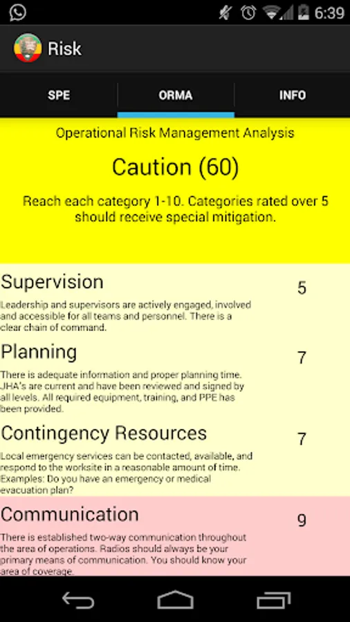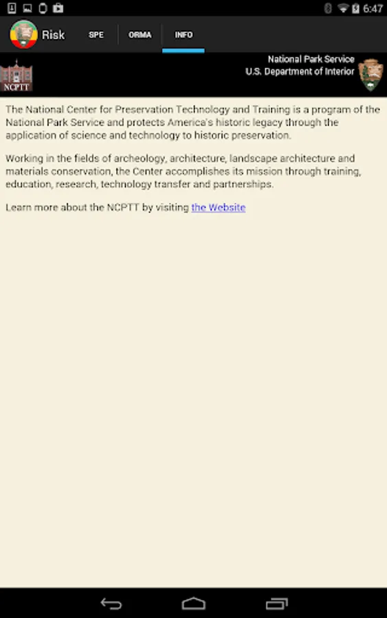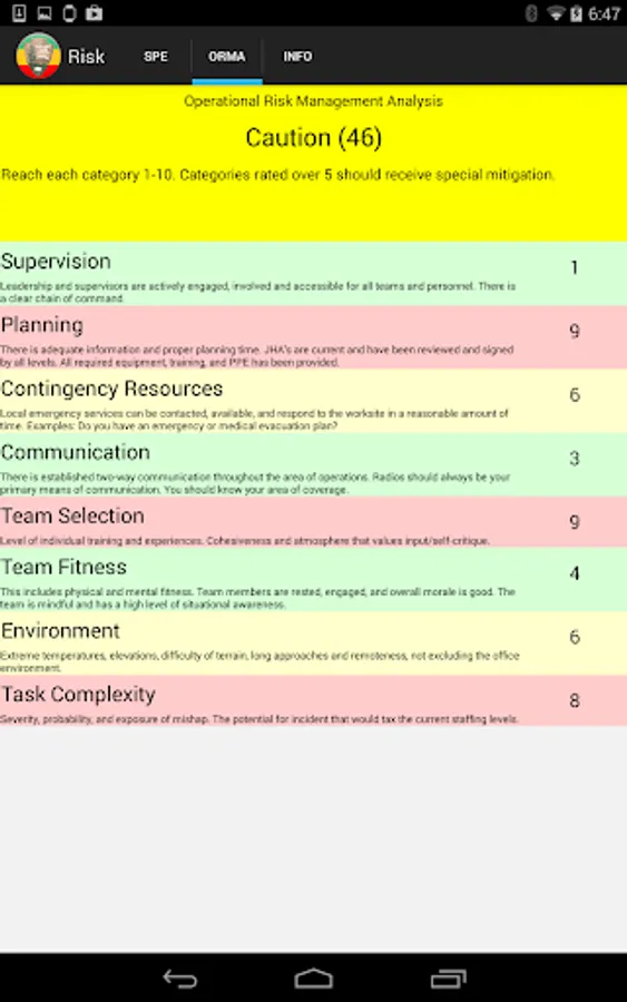 The Risk app is a calculator that uses the SPE and ORMA risk assessment models to determine risks and mitigate those risks. This app was developed as an alternative to the laminated paper card issued to National Park Service staff who complete Operational Leadership training.