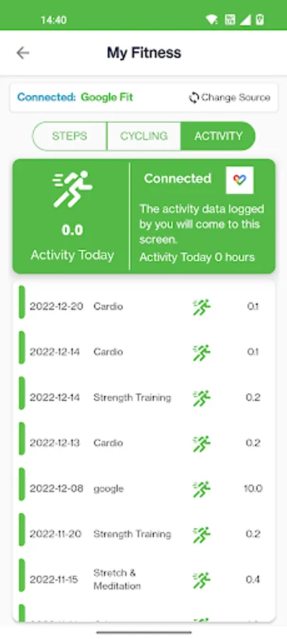 Sync your activity and step data from Google Fit, fitbit or your device sensors. You can choose different source for data. For example: sync steps and activities from Google Fit. Default selection mode of data is using your device sensors