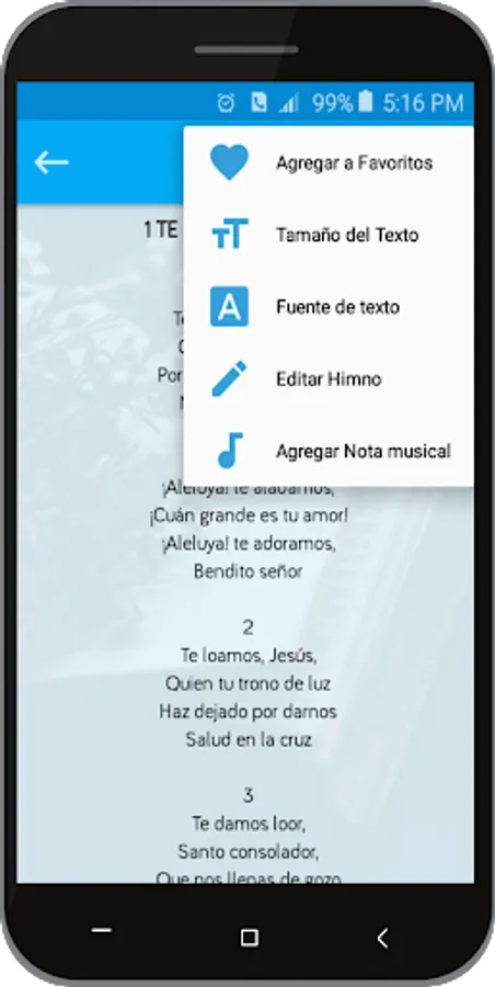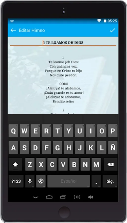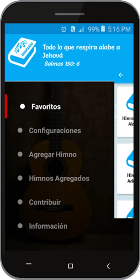 This application contains more than a thousand hymns distributed in categories such as: Hymnal of Faith and Praise, Hymnal Songs to the Lord, Hymnal showers of Blessing, Hymnal Spring of Inspiration, Hymns of Adoration, Choirs of praise, Special Hymns and Birthday Hymns.
