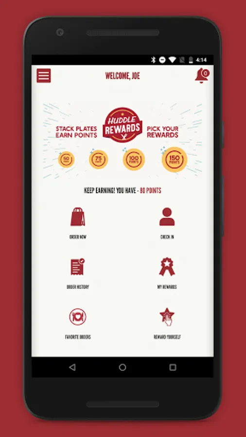 Huddle House is introducing Huddle Rewards, the easy way to stack plates, earn points and pick your rewards! Start earning today by visiting your local Huddle House or ordering online through the app. Download today and use the app to track your points, redeem your rewards and even place your online orders for pickup, curbside or delivery.