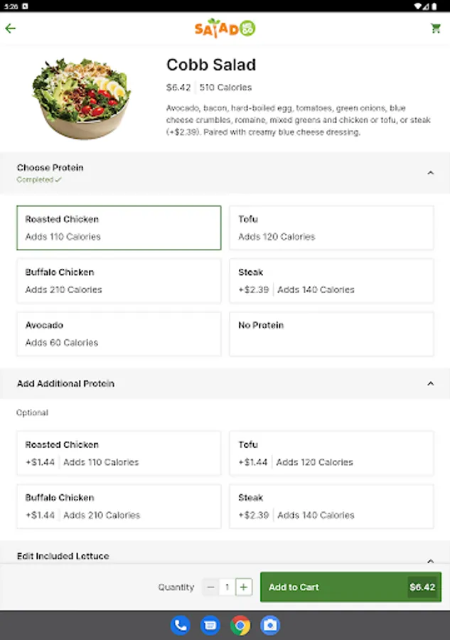Features include ability to customize your order, save your favorite orders, location services to find your closest Salad and Go (or any location).