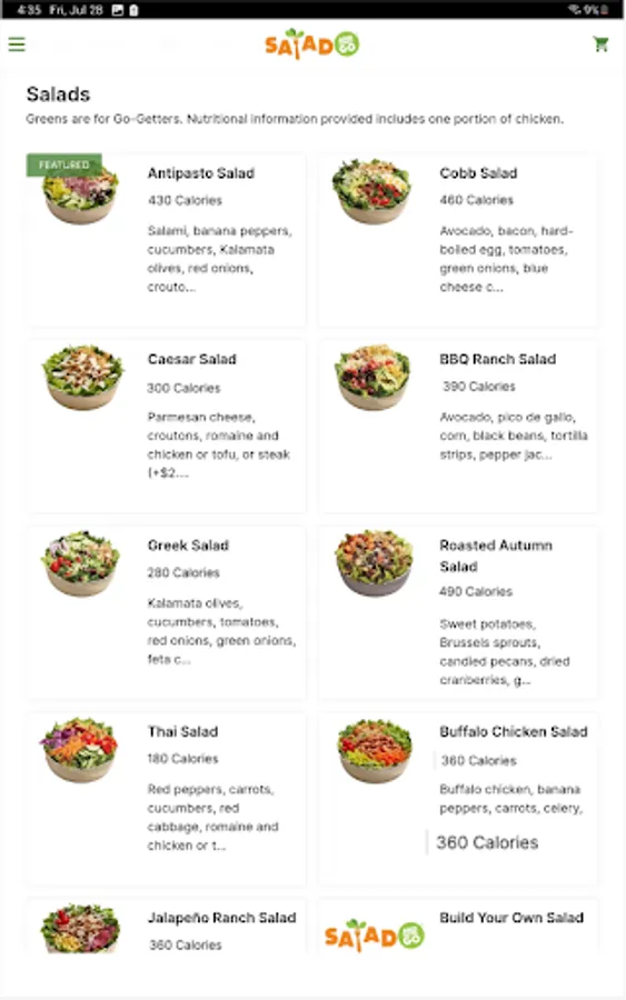 Salad and Go just got faster. Online ordering app for convenient ordering with quick pick up at either our pickup window or via the drive thru. Save your favorite orders for easy reordering.